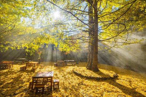 4、江東銀杏村:電影《武俠》的拍攝地,有宛如天堂的靜謐秋景,是冬季里的金色夢想,天下第一銀杏王國;