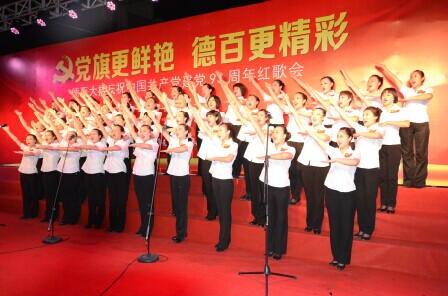 《沒有共產(chǎn)黨就沒有新中國》、《團結(jié)就是力量》、《走向復(fù)興》等一曲曲經(jīng)典的紅色旋律激起了全體德百員工的共鳴,抒發(fā)了廣大員工熱愛黨、熱愛祖國、熱愛企業(yè)的紅色情懷,充分展示了德百人積極向上、昂揚奮進的良好精神風(fēng)貌,深刻表達(dá)了對黨、對祖國母親的無限熱愛和美好的祝福。