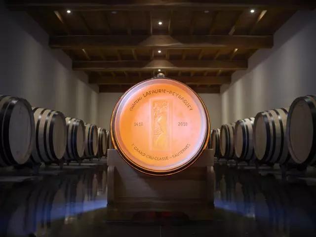 ▲為慶祝Chateau Lafaurie-Peyraguey酒莊誕辰400周年,著名水晶品牌萊儷(Lalique)制作的225升純水晶酒桶。