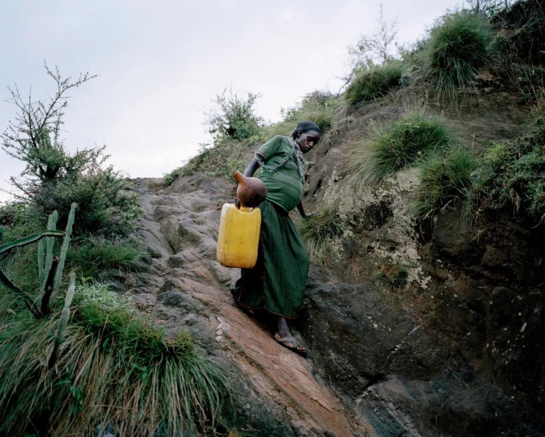 埃塞俄比亞 Konso 地區(qū),已有 8 個(gè)月身孕的婦女走下緩坡打水