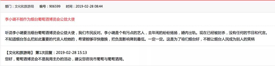 無獨(dú)有偶,今年初,煙臺國際葡萄酒博覽會想推陳出新,于是邀請李小璐擔(dān)任第十二屆煙臺國際葡萄酒博覽會的公益大使,希望“李小璐將利用她在巨大的粉絲影響力在中國全力推廣煙臺酒博會。”