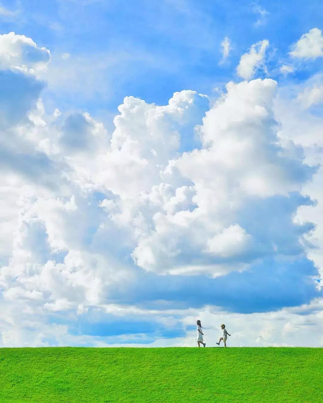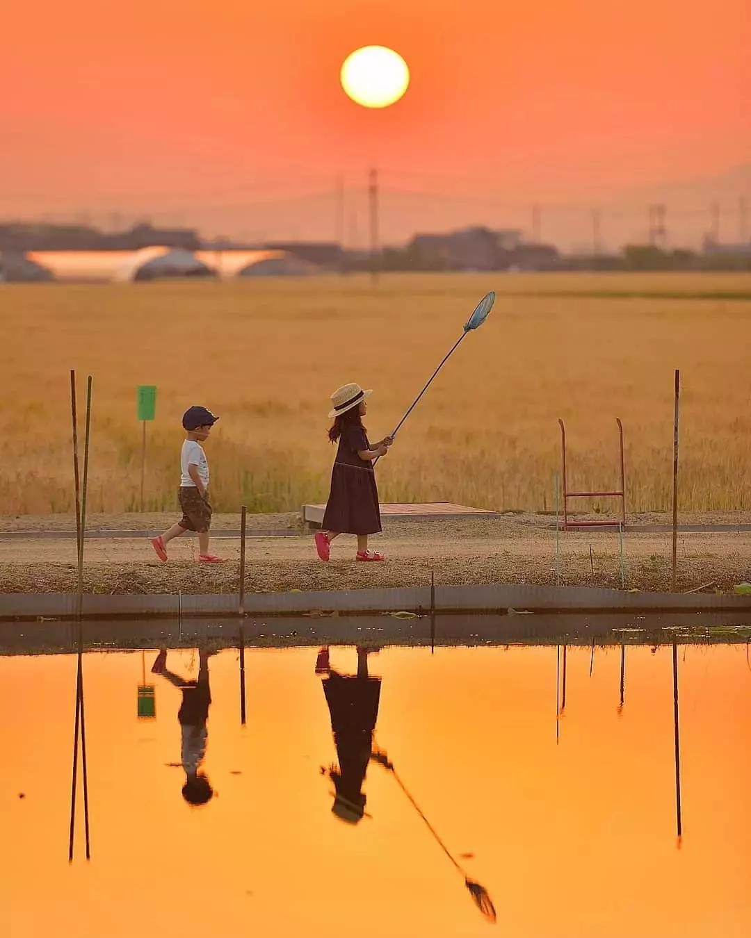 在夢幻般的風景下,孩子的背影或者剪影成為了畫面的視覺焦點,這是梶原紀之作品的最大特點。