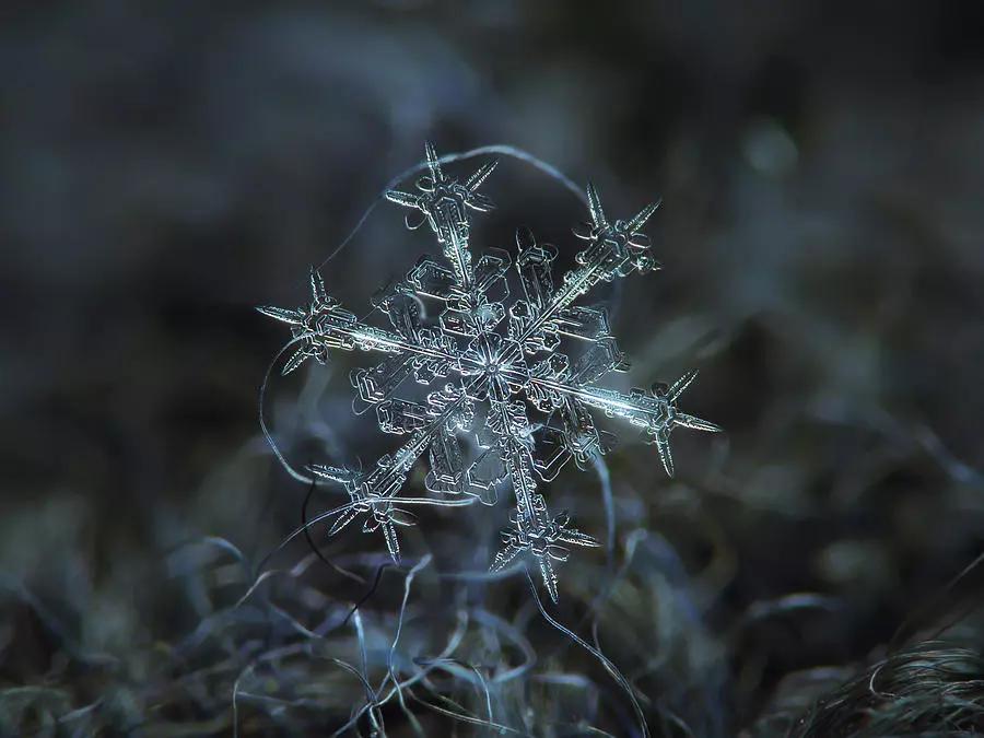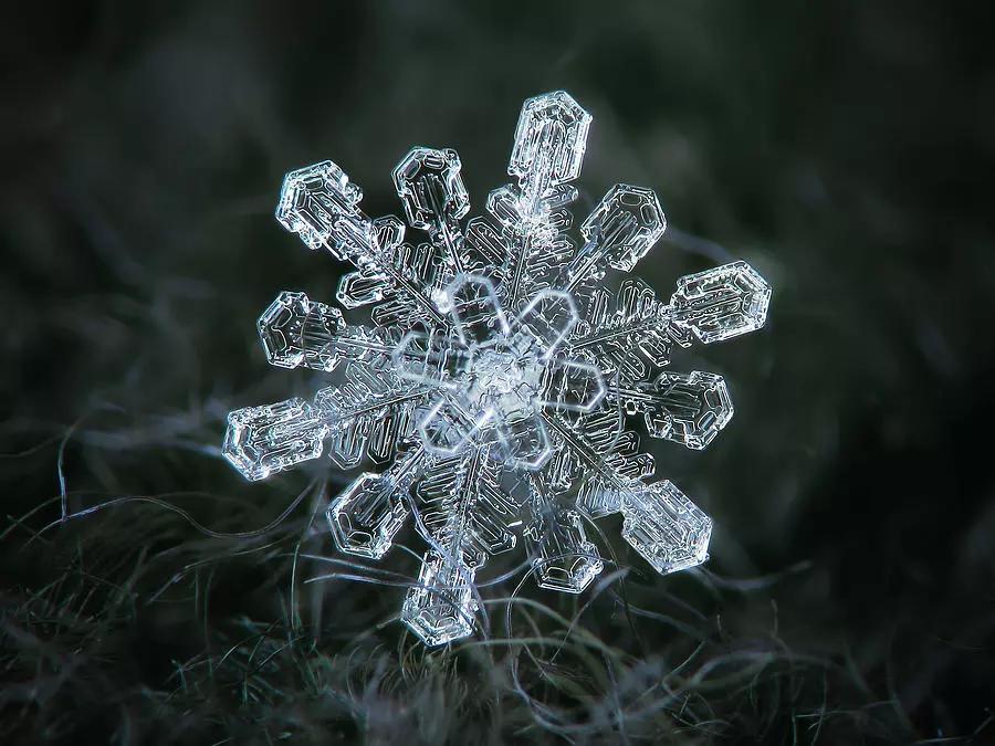 同樣是拍雪,另一位來自俄羅斯的攝影師阿列克謝·克拉托夫(Alexey Kljatov)卻采用了完全不同的方式拍攝——他喜歡近距離記錄雪花的結(jié)構(gòu)形態(tài)。