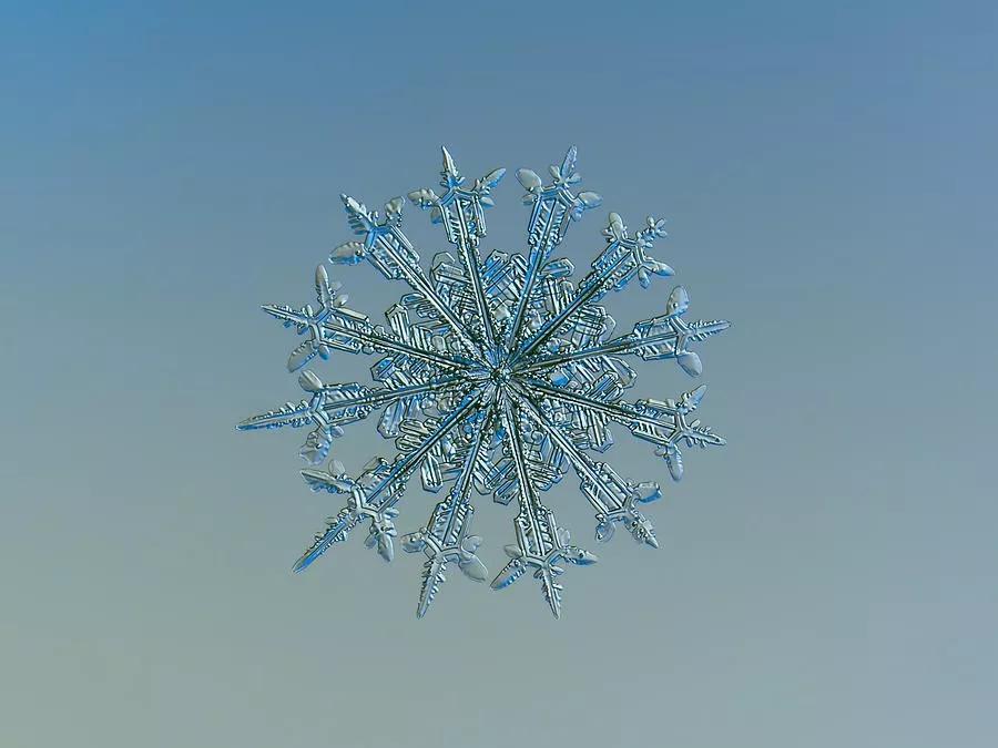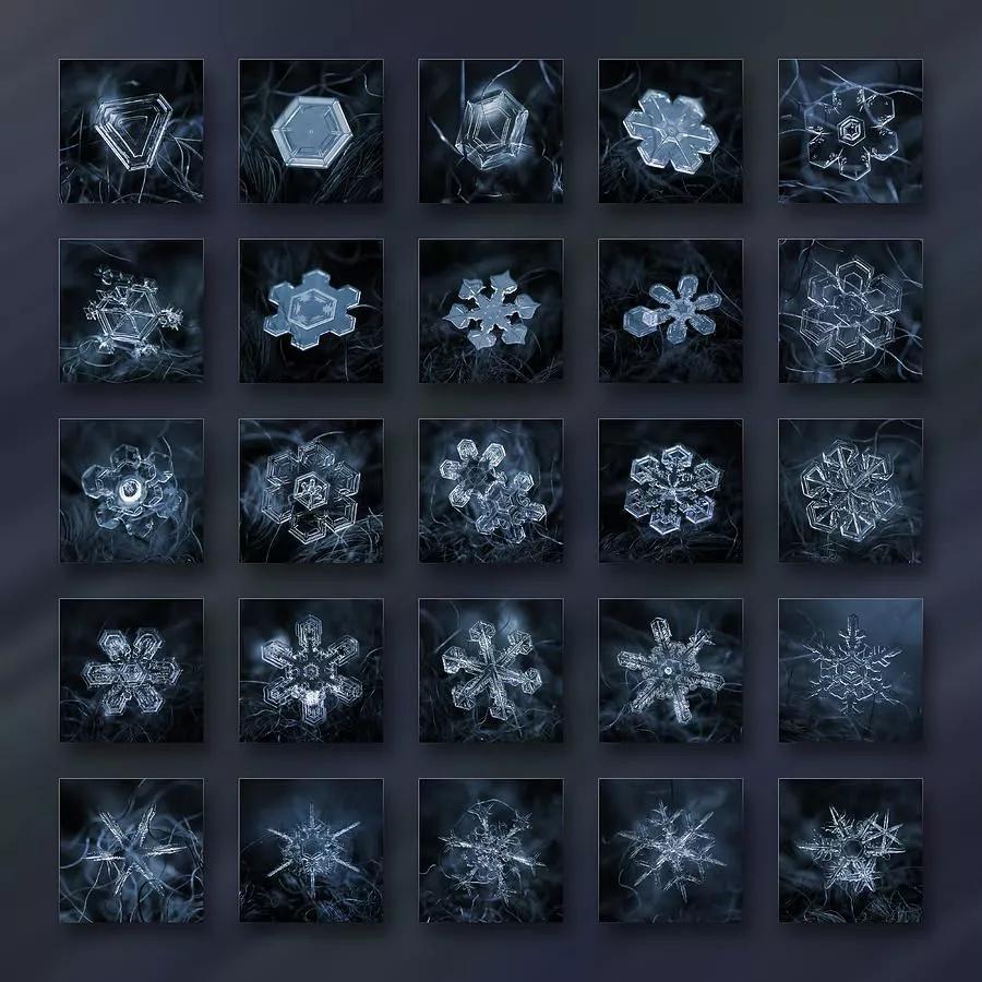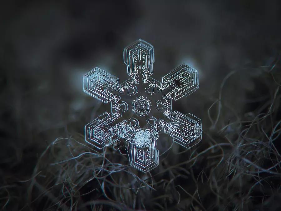 在他的微距鏡頭下,紛紛揚(yáng)揚(yáng)的一場(chǎng)場(chǎng)雪被“拆碎”,形態(tài)各異的冰晶呈現(xiàn)出各式形狀規(guī)整、樣式精美的圖案,在讓人沉迷于雪花無限美麗與夢(mèng)幻的同時(shí),亦讓人不禁贊嘆大自然的神奇。