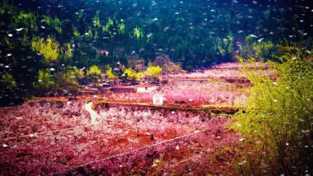 正如明代詩人黃端伯形容的那樣:“二月桃園踏落花,桃花千樹爛于霞。”
