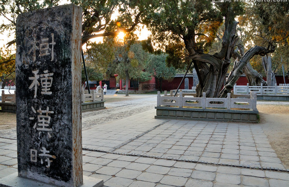 時光飛逝,轉(zhuǎn)眼到了民國年間,軍閥孫良誠的部隊(duì)也駐扎在岱廟里,其中一個小士兵聽說了這個故事后,也要在旁邊的連理柏上試上一試,結(jié)果還沒來得及行動呢,風(fēng)聲傳出去被當(dāng)時的道長尚士廉?dāng)r住,報告給了他的長官。偏巧這位長官是一位敬神之人,命人把小士兵拖來用皮鞭抽了一頓(屬下冒犯神靈這還了得,闖禍的小士兵自然是逃躲不了皮肉之苦),小士兵懷恨在心,等到晚上月黑風(fēng)高無人之際,他把他的棉被沾滿煤油塞到連理柏中的一株,一把火燒毀了其中一株,當(dāng)年乾隆皇帝來到泰山時看到這株柏樹雙干而立,古柏參天,被它不屈的精神折服深深的印在腦海里,乾隆皇帝回到皇宮后憑借印象把它描繪了出來,乾隆皇帝先后來泰山總共留下146首詩唯獨(dú)留下這一副畫,我們現(xiàn)在看到正中的這個《御制漢柏圖贊》碑就是當(dāng)年乾隆皇帝憑借記憶畫下的畫,不幸果然被乾隆爺言中,現(xiàn)在的連理柏已經(jīng)是一生一死,生離死別,漢柏?zé)o言,但我們相信他們會把生死相隨的承諾一直堅守到永遠(yuǎn)。
