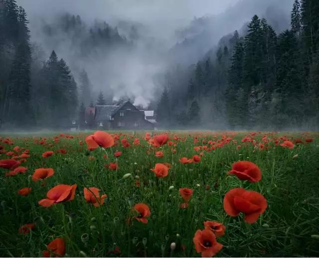 1、能夠起到引導(dǎo)線效果的前景。比如,下圖中的花,觀看者會通過花的軌跡一路看去,最后到達遠處的房子。