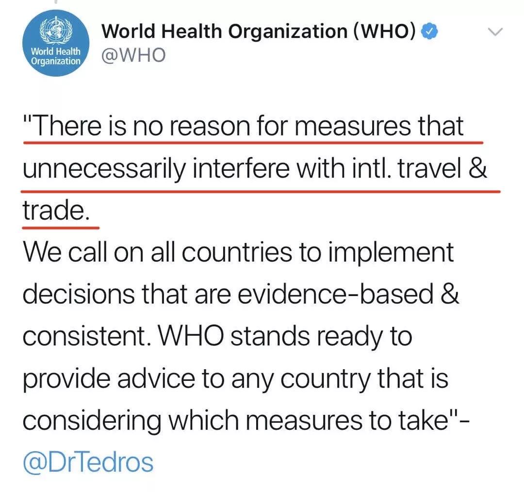 他強(qiáng)調(diào),目前各國(guó)“沒(méi)有任何理由采取不必要的限制旅游和貿(mào)易的措施”。