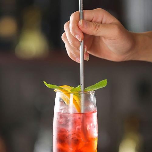 4、碎冰棒:用于搗碎冰塊、水果、其他輔料等。有多種形狀,常見(jiàn)材料有不銹鋼、塑膠。開(kāi)酒吧必備,家中自調(diào)可選用類(lèi)似工具代替。