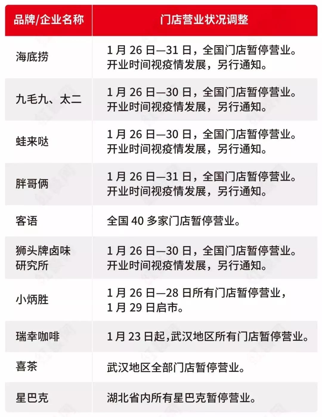 據(jù)媒體不完全統(tǒng)計(jì),海底撈、九毛九、太二、蛙來(lái)噠、胖哥倆、客語(yǔ)等品牌已經(jīng)宣布全國(guó)門(mén)店暫停營(yíng)業(yè),具體開(kāi)業(yè)時(shí)間另行通知。