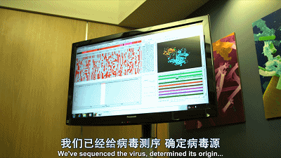 實驗室第一時間分離出這種全新的病毒,并完成基因測序。影片中的病毒是在蝙蝠和豬體內(nèi)發(fā)生的變異。