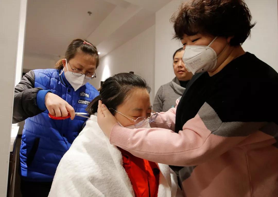 北京醫(yī)療隊(duì)到達(dá)后的第二天,由于就要穿著防護(hù)服進(jìn)行工作,宣武醫(yī)院的一位護(hù)士剪掉了自己的長(zhǎng)發(fā)。