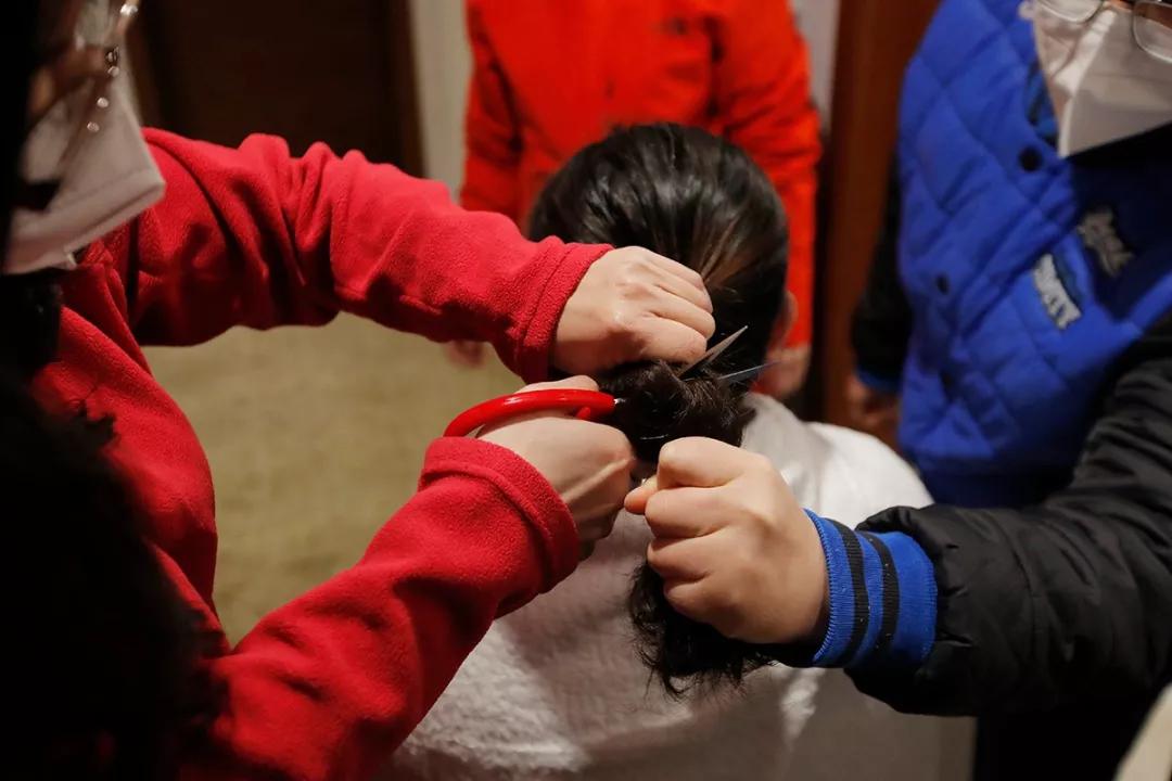 宣武醫(yī)院的護(hù)士在同事的幫助下剪掉了自己的長(zhǎng)發(fā)。