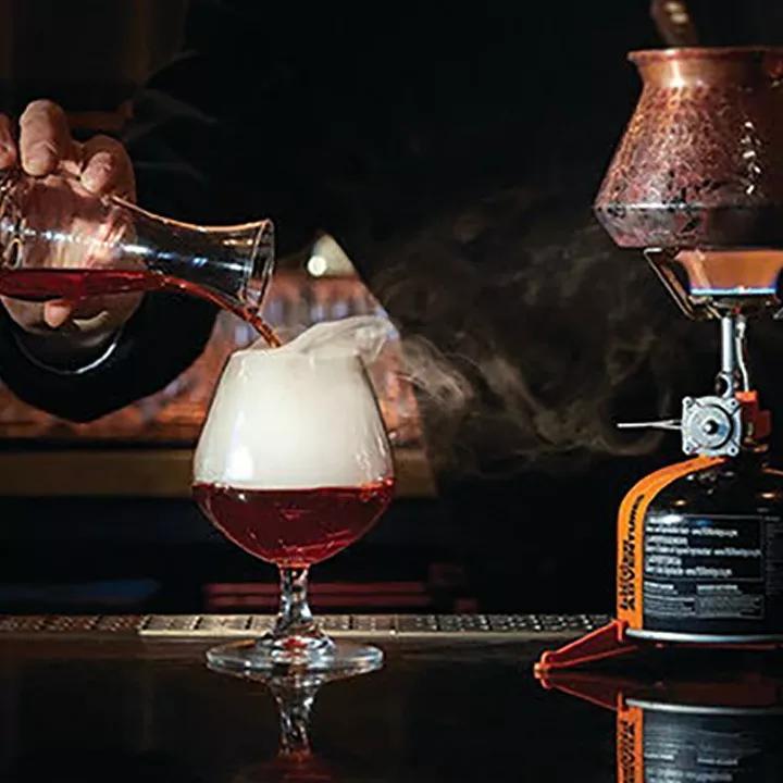 “Chinato是味美思的絕佳替代品,具有草本的復(fù)雜性,干橙皮烈酒則會(huì)更加釋放它的味道”,F(xiàn)ilkins說(shuō),“當(dāng)酒呈上來(lái)的時(shí)候,煙霧增加了驚喜的氛圍,巧克力和豆蔻則帶來(lái)豐富的芳香和的溫暖的烘焙口感。”