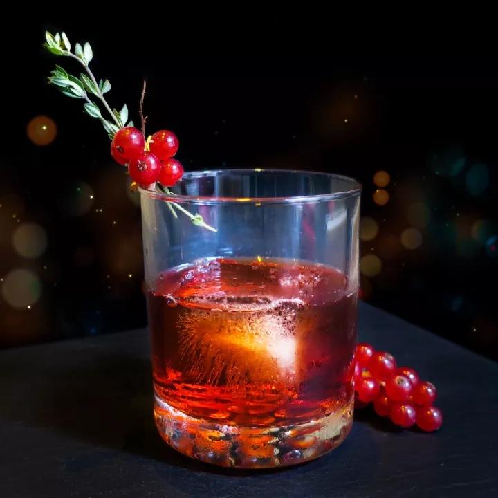 配方:2盎司南瓜黃油風(fēng)味的油脂浸洗波本威士忌、1/2盎司 Tempus Fugit Gran Classico 苦味開胃酒、5滴Fee Brothers蔓越莓苦精裝飾:百里香和小紅莓杯子:洛克杯
