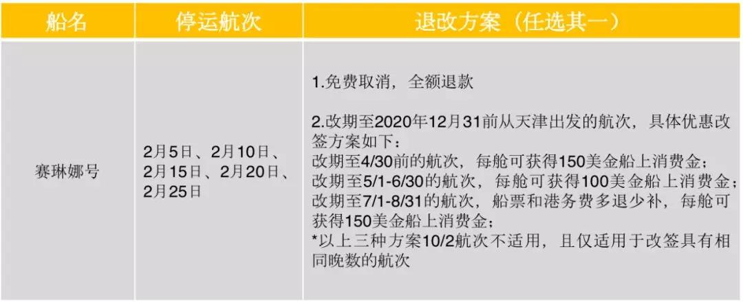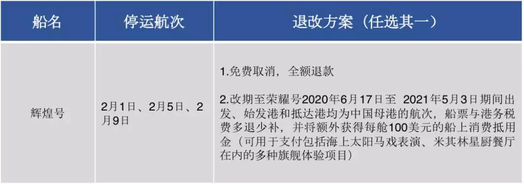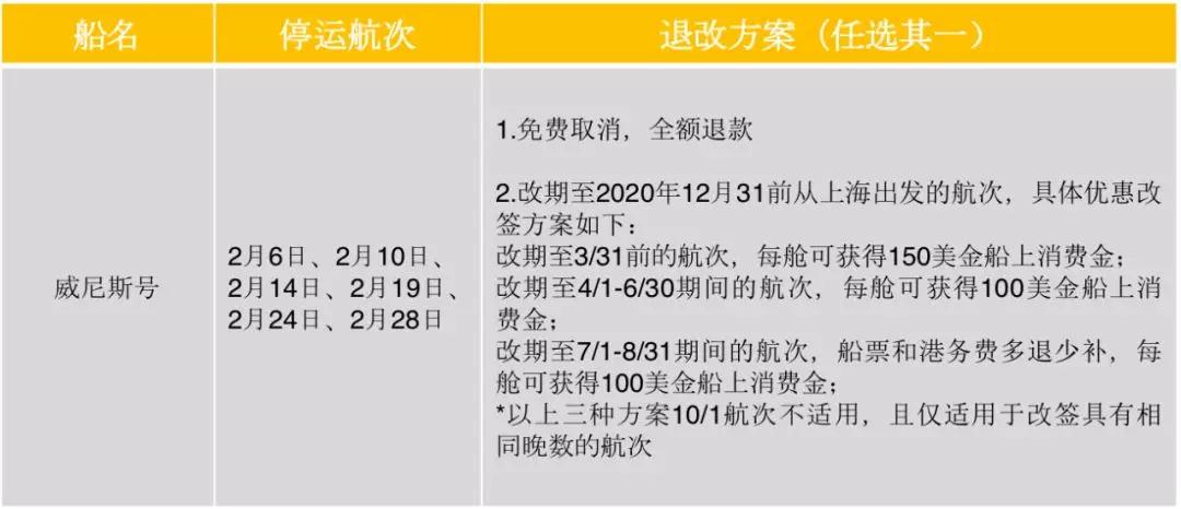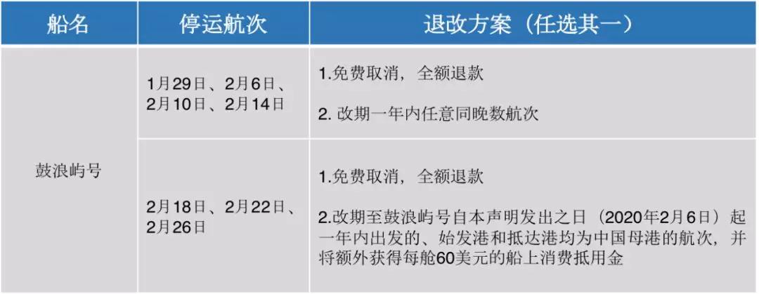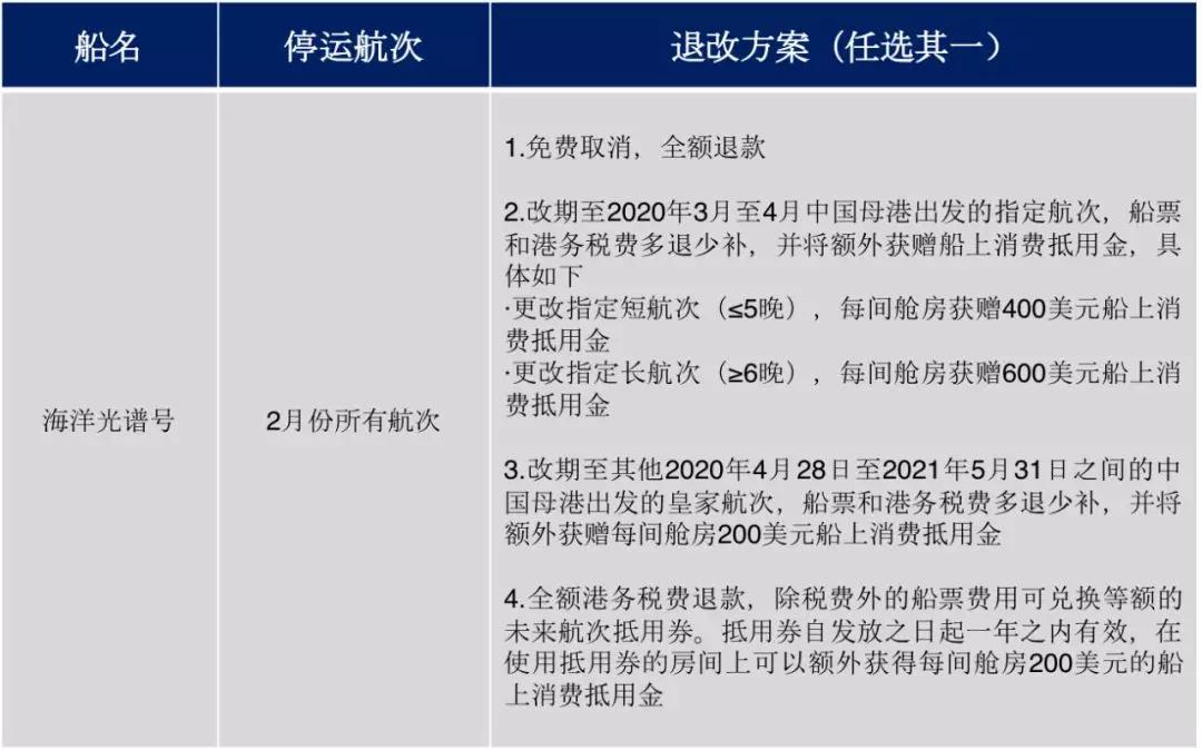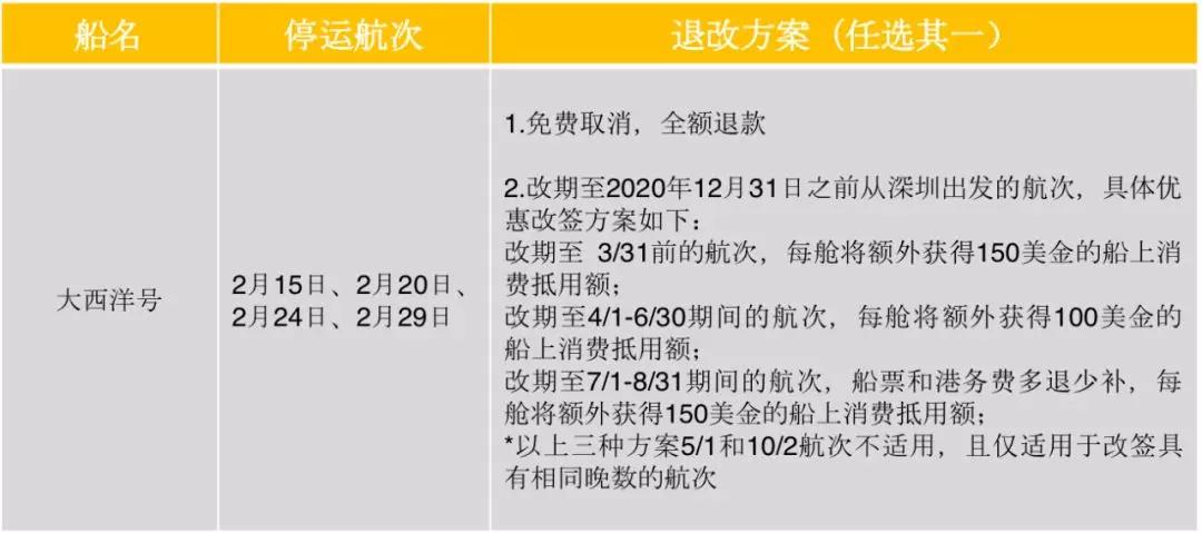 各郵輪公司在停運(yùn)的大形勢下,給出的退改方案主要為兩類,全額退款和航次改期,改期方案中大部分都給予了船上消費(fèi)金作為對預(yù)訂乘客的補(bǔ)償,可以感受到一定的誠意。