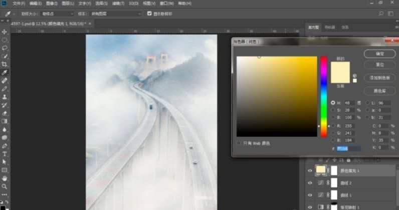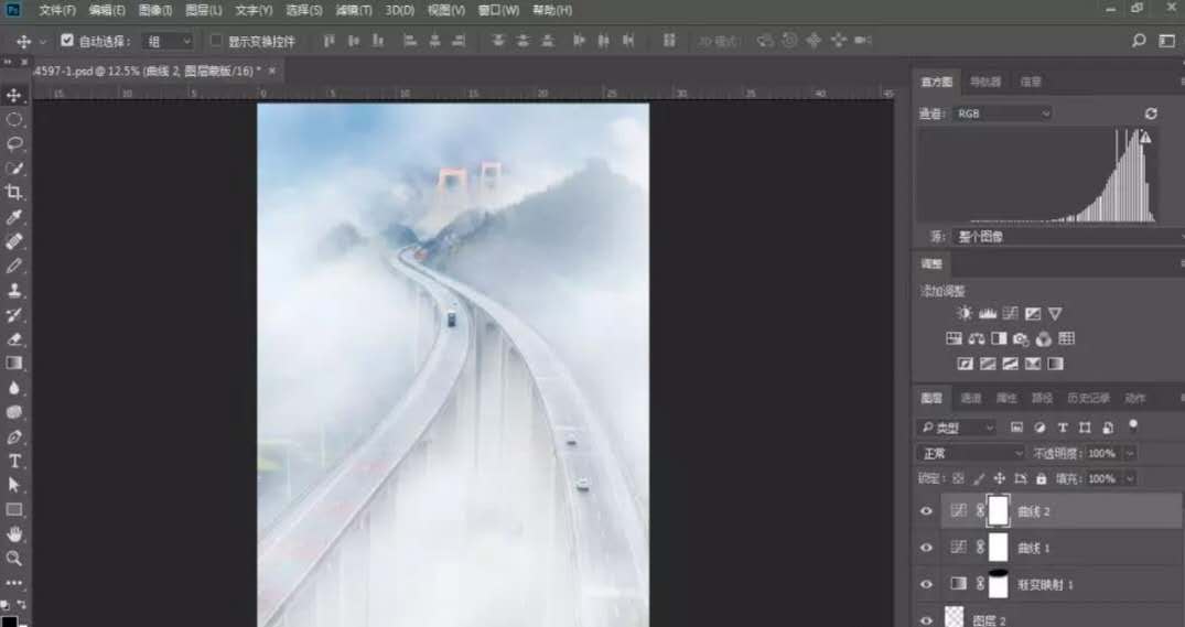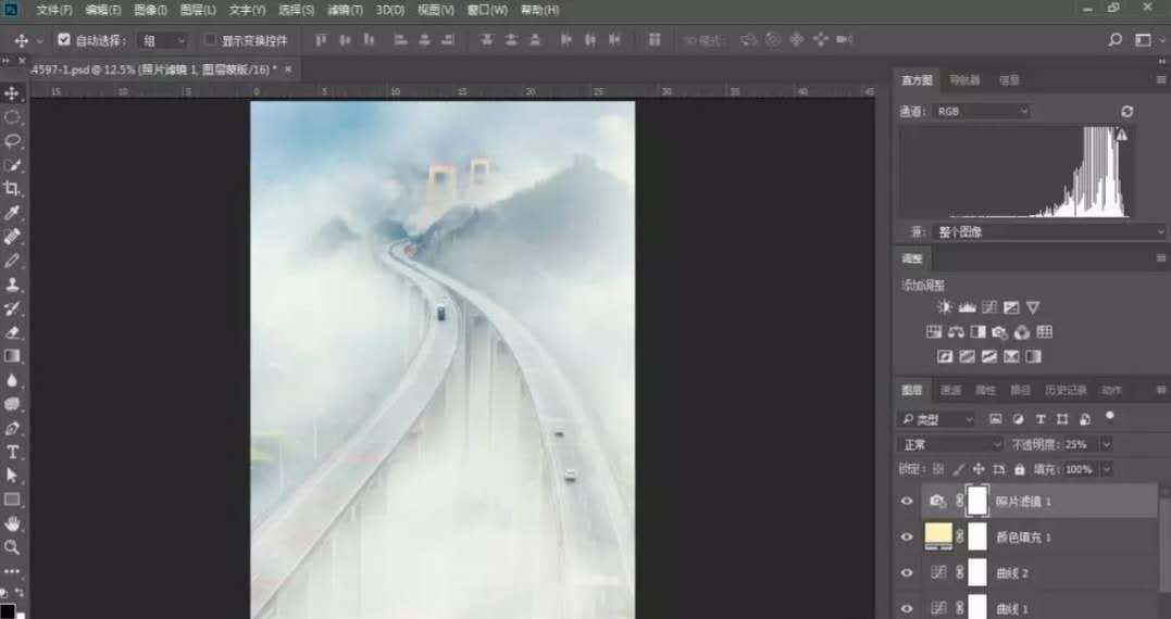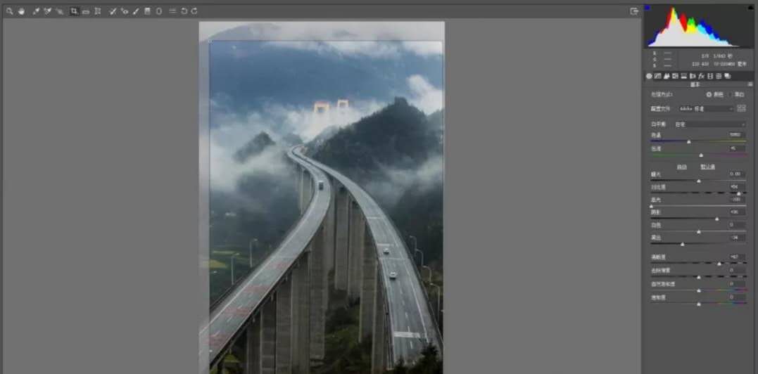 1.利用原片局部云霧,增加畫面整體的云霧效果。