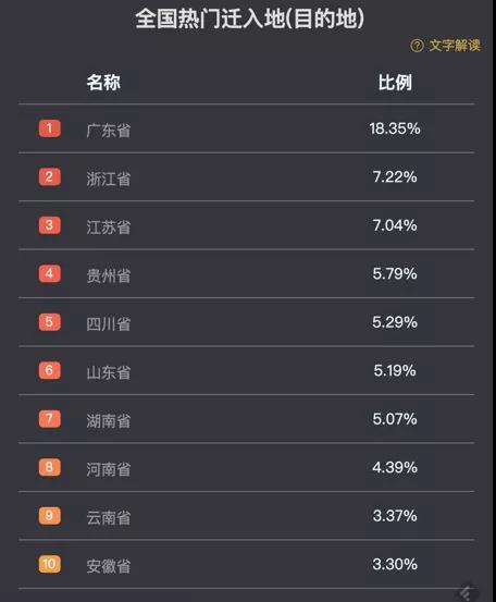 按城市來看,人口流入前三位全是廣東的。