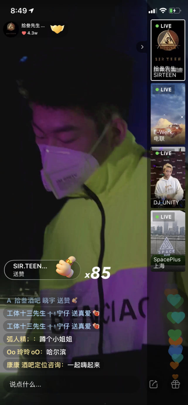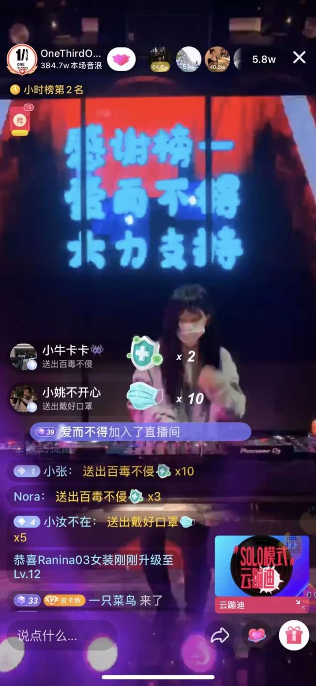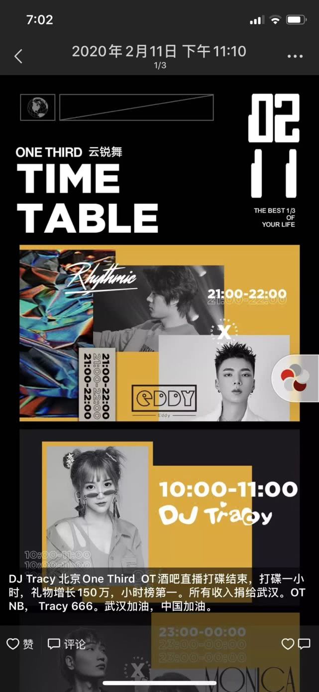 作為一家夜店的招牌之一,DJ們的日子也并不好過。2月11日,ONETHIRD在直播中邀請了嘉賓DJ Tracy。當晚,Tracy創(chuàng)下了1小時收入150萬音浪的成績,價值約15萬人民幣,一同歸入了ONETHIRD的公益通道。