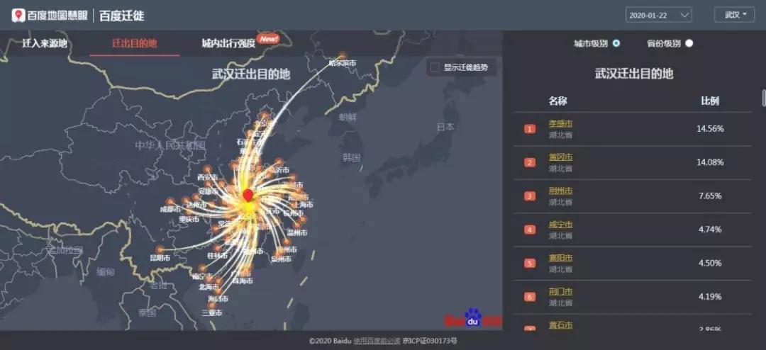 1月10日到23日從武漢流出了500萬(wàn)人,通過大數(shù)據(jù)分析其具體流向,為各省市的疫情防控提供了精準(zhǔn)的方向。