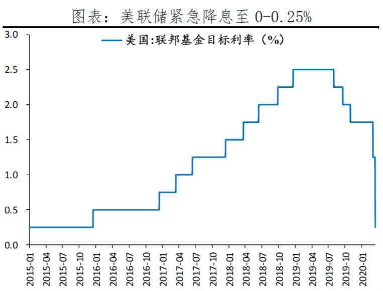 繼3月3日緊急降息0.5個百分點(diǎn)之后,3月15日美聯(lián)儲再次宣布將聯(lián)邦基金目標(biāo)利率下調(diào)1個百分點(diǎn)至0-0.25%的區(qū)間,并啟動7000億美元的量化寬松計(jì)劃。此外,美聯(lián)儲宣布將貼現(xiàn)窗口利率下調(diào)1.5個百分點(diǎn)至0.25%,提供日內(nèi)信貸支持,鼓勵銀行使用資本和流動性緩沖,將法定存款準(zhǔn)備金率降至0。