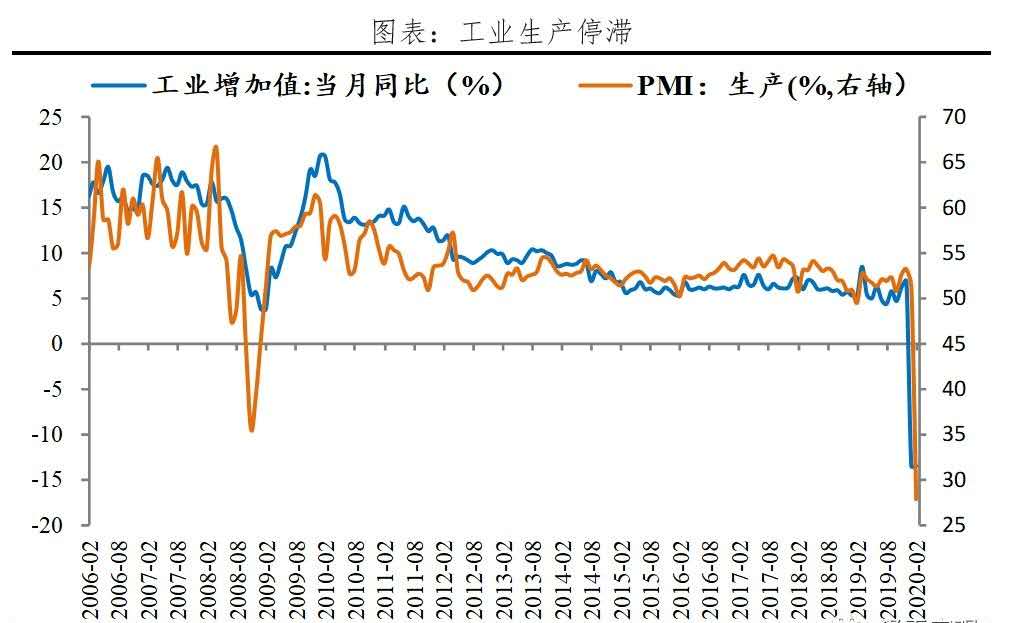 受疫情沖擊,中國(guó)1-2月經(jīng)濟(jì)暫時(shí)停擺,生產(chǎn)投資消費(fèi)冰封,經(jīng)濟(jì)數(shù)據(jù)暴跌,一季度GDP已鐵定負(fù)增長(zhǎng)。代價(jià)沉重,勝利來之不易。1-2月規(guī)模以上工業(yè)增加值同比-13.5%,2019年12月為6.9%。1-2月城鎮(zhèn)固定資產(chǎn)投資(不含農(nóng)戶)同比-24.5%,2019年為5.4%。1-2月房地產(chǎn)開發(fā)投資同比-16.3%,2019年為9.9%。1-2月社會(huì)消費(fèi)品零售總額同比-20.5%,2019年12月為8%。2月新增社會(huì)融資規(guī)模為8554億元,比上年同期少增1111億元。