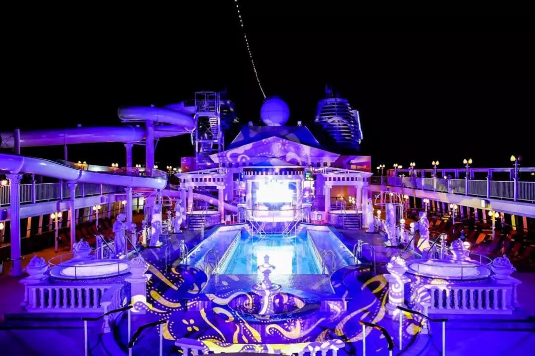 甲板上,有高空飛索表演,有海上煙花匯演,你可以在各式各樣的休閑、娛樂、美食、購物場景中獲得無數(shù)與眾不同的美好體驗,當(dāng)然,你也可以什么都不體驗,只是吹著海風(fēng)看看世界。