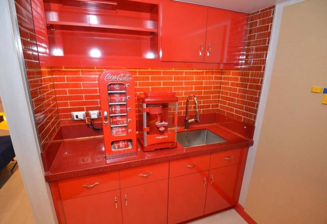 廚房區(qū)位于終極家庭套房第一層的一個角落里