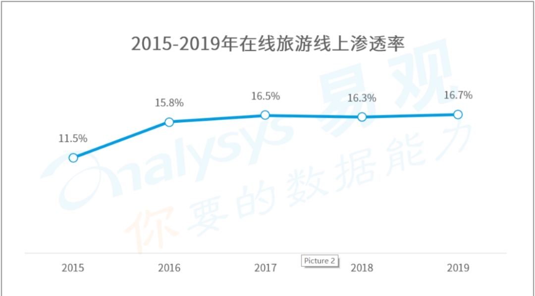 2015-2019年在線旅游線上滲透率