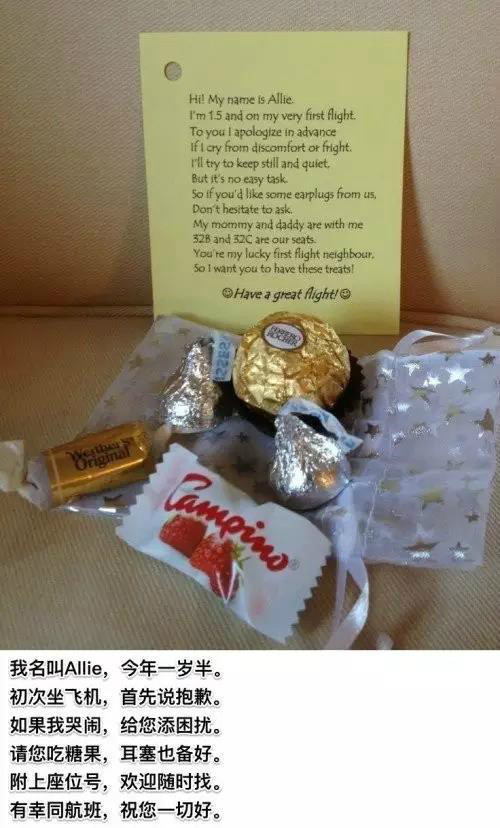 寶寶哭鬧的話難免周圍的乘客會有意見,爸爸媽媽們可以提前準(zhǔn)備一些小糖果小餅干或者是耳塞之類的,在飛機(jī)起飛前送給周圍的乘客。