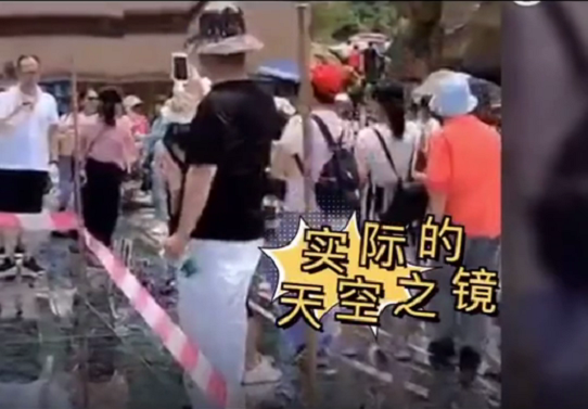 小小區(qū)域,玻璃搭建出一個(gè)簡(jiǎn)陋場(chǎng)景,模擬天空倒影效果。游客過(guò)多導(dǎo)致玻璃被踩的臟亂,現(xiàn)場(chǎng)秩序混亂。游客紛紛抱怨,根本拍不出“天空之鏡”的效果照片,景區(qū)如此不走心的項(xiàng)目,簡(jiǎn)直就是拿人開(kāi)涮。
