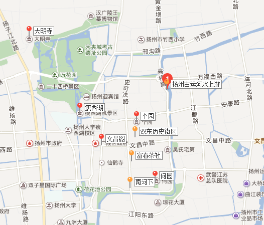 南門:乘坐4、5、6、17、23晚、27、29、37、51夜、62、103、旅游觀光巴士、旅游專線、鎮(zhèn)揚(yáng)城際等公交車在瘦西湖站下車。