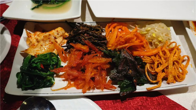 向當(dāng)?shù)厝舜蚵犻L(zhǎng)春的特色餐飲,得知有一家朝鮮美食體驗(yàn)館,所以有幸近距離接觸到了北朝鮮的女孩。