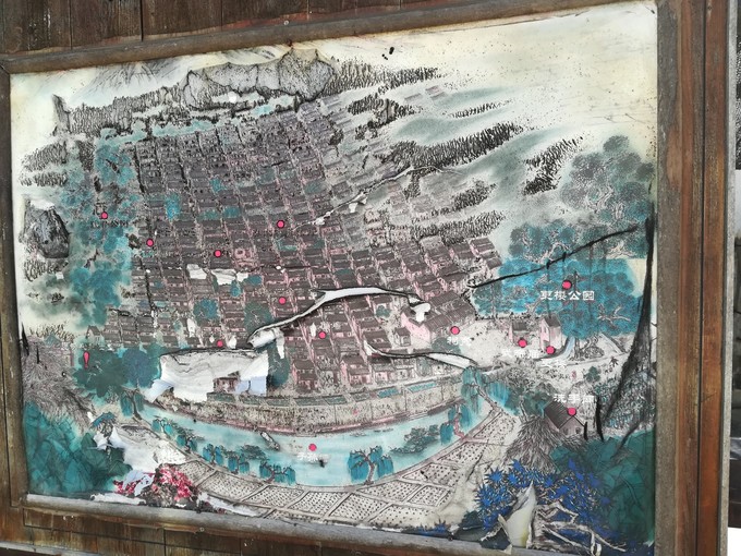 村口的全莊地圖,推薦停車(chē)在莊門(mén),莊門(mén)進(jìn)莊門(mén)出,幸存古屋集中在中心巷道東側(cè),南邊主要是花田。