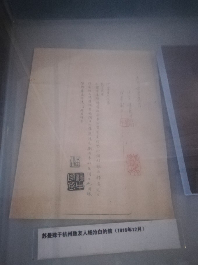 雕像左邊是蘇曼殊的紀(jì)念館,陳列了幾幅蘇曼殊書(shū)畫(huà)及一些資料的復(fù)制品。