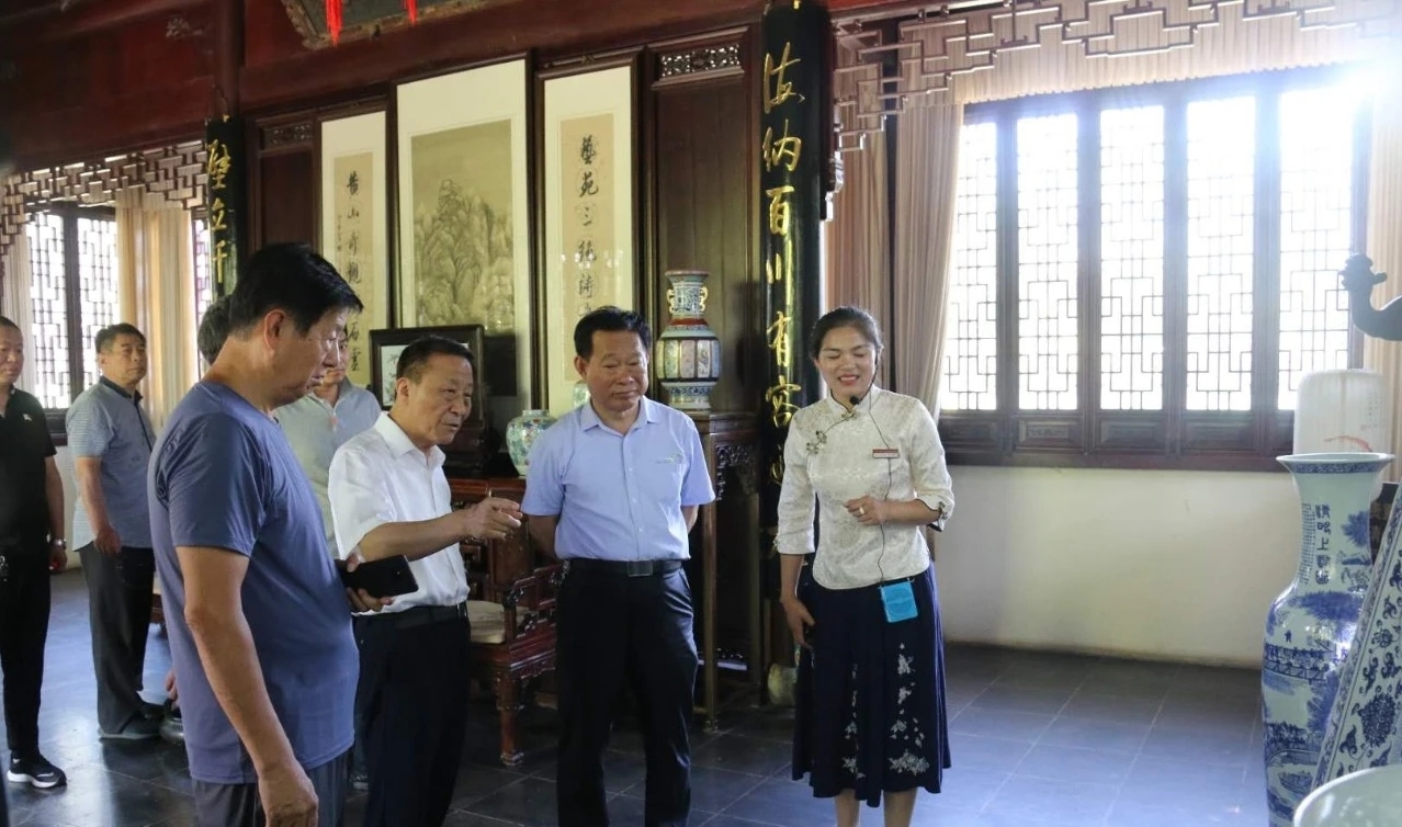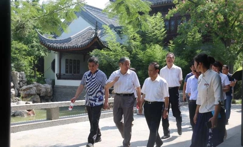 在檢查調(diào)研過程中,杜秘書長一行邊實(shí)地檢查調(diào)研,邊聽取介紹,并不時(shí)詢問了解相關(guān)情況,對(duì)宛園突出文化靈魂,精造旅游載體的做法給予高度評(píng)價(jià),他們認(rèn)為:“宛園”是一家“江南古建,水鄉(xiāng)風(fēng)格”的蘇式園林。它匯集眾家名園精華,布局精巧,疏密得當(dāng)、移步易景、曲徑通幽;磚雕、木雕、泥雕、青磚灰瓦、奇石遍布,盡顯靈秀氣息;契合了“山水詩、山水畫、山水園”相融合的意境,完美地實(shí)現(xiàn)了“千景匯集小天地,千幅圖畫在園中”的藝術(shù)效果。中國運(yùn)河名揚(yáng)天下,宛園美景享譽(yù)四方。同時(shí),他們高屋建瓴,指出了園林建設(shè)中,不被人們意識(shí)的瑕疵,提出了頗有見地的指導(dǎo)意見和極具針對(duì)性的建設(shè)性建議。這些意見和建議對(duì)“宛園”的進(jìn)一步提高、完善和發(fā)展將起到積極的推動(dòng)作用。