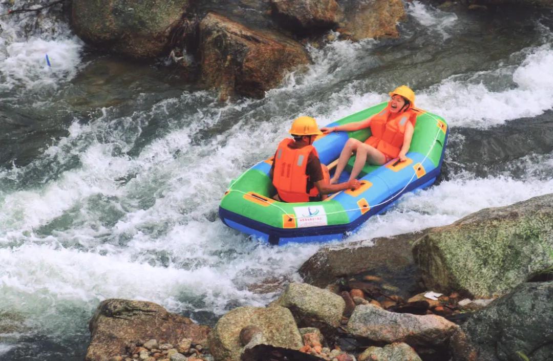 黃山漂流全程2.6公里,集漂流、沖浪、戲水、山鄉(xiāng)風(fēng)情、自然生態(tài)、徽州民俗于一身,內(nèi)容最為豐富,漂流最為刺激,游玩最能忘情的漂流河段。