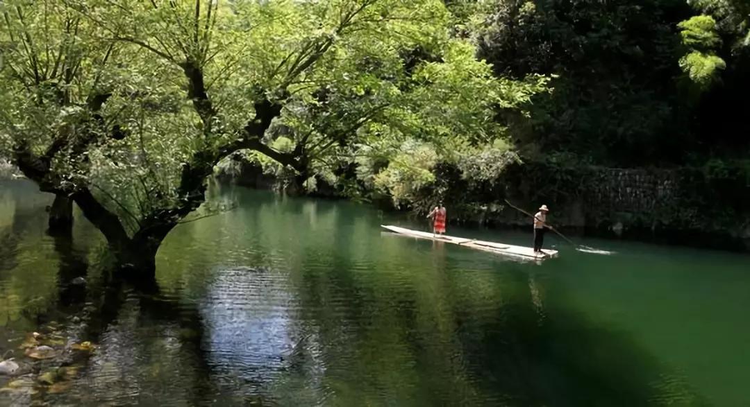枧潭村座落在休寧縣藍(lán)田鎮(zhèn),一半是樹(shù),一半是水,漂流之上僅有二十幾戶人家。這便是枧潭。