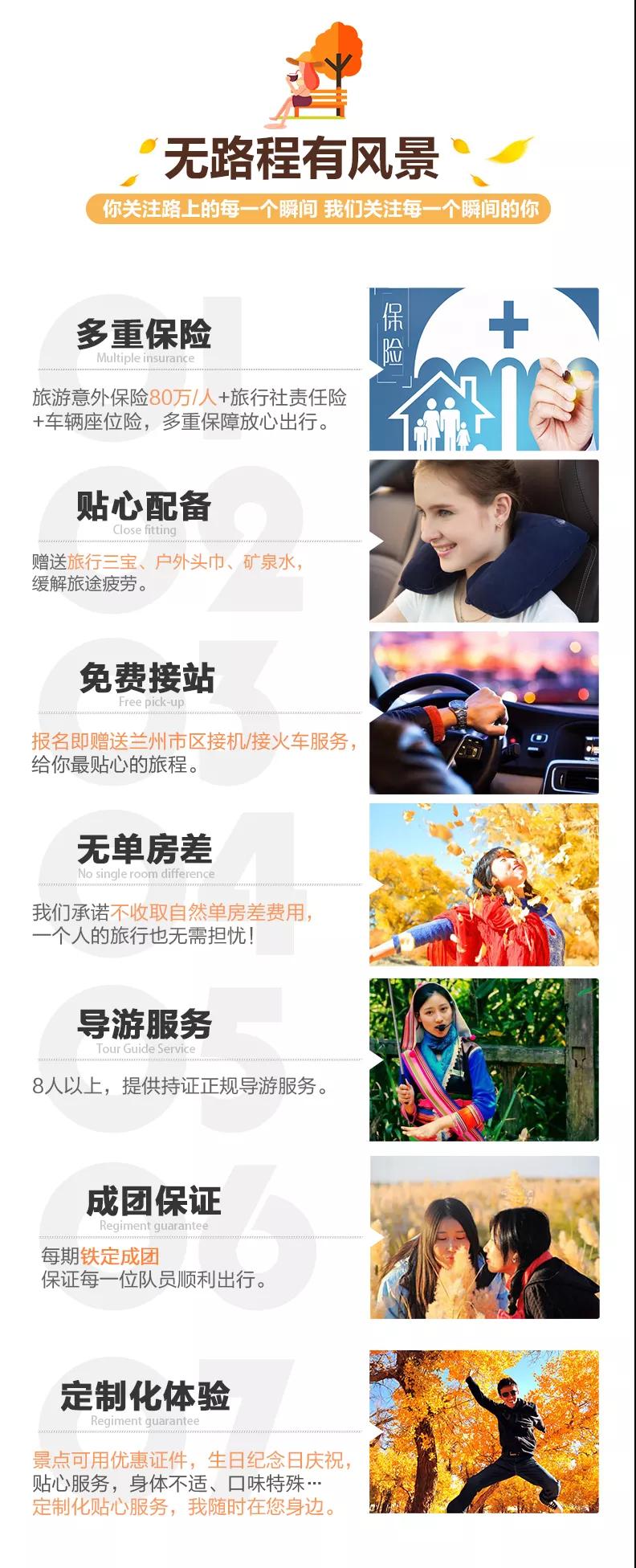 接站服務(wù):3人以下的客人抵達(dá)蘭州可自行打車前往指定酒店,打車費用可報銷30元/人;3人及以上的客人抵達(dá)蘭州可提供蘭州市區(qū)拼車接機/接火車服務(wù),接機/接火車的工作人員會在您出發(fā)日期前一天21:30之前向您推送消息并與您聯(lián)系,如果超過時間沒有接到任何通知,請及時與導(dǎo)游或報名處聯(lián)系。(節(jié)假日用車人數(shù)較多情況下客人等待時間可能會延長;我方會安排臨近航班拼車接機接站,如遇其他客人航班火車延誤晚點情況,等待時間可能會延長,敬請諒解)