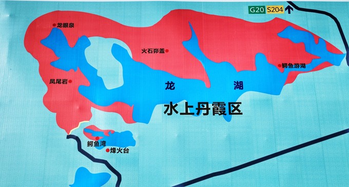 景區(qū)是很大一片區(qū)域,分為水上丹霞區(qū)、火焰丹霞區(qū)、地心丹霞區(qū)三個(gè)部分。路標(biāo)指示不明確,只有“水上丹霞區(qū)”和“火焰丹霞區(qū)”兩個(gè)地方的標(biāo)識(shí),具體需要自行找路。根據(jù)當(dāng)?shù)厝私榻B,整個(gè)景區(qū)有1、2、3、4、5號(hào)五個(gè)景點(diǎn),1至4號(hào)可以自行開(kāi)車(chē)游覽,5號(hào)由于路況不好并且有十多公里路遠(yuǎn),需要花200元左右請(qǐng)當(dāng)?shù)厝藥凡拍芮巴聢D是現(xiàn)場(chǎng)拍的景區(qū)示意圖,能很清晰的看出景區(qū)分布,供大家參考。