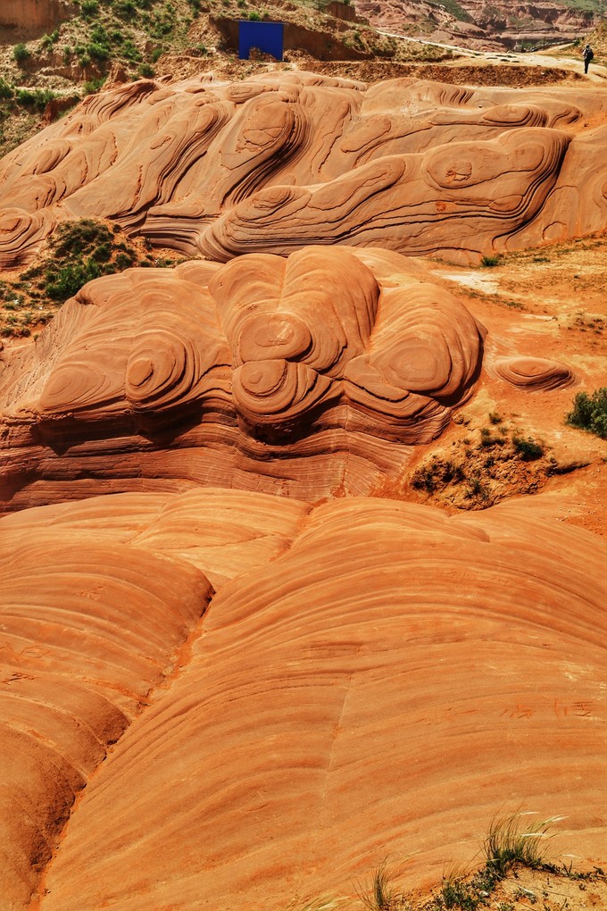 龍洲丹霞B景區(qū),目前命名火焰丹霞,也是最類(lèi)似美西波浪谷的地方,這里向我們展示了由數(shù)百萬(wàn)年的風(fēng)、水和時(shí)間雕琢砂巖而成的奇妙世界。深深的溝壑里,千百年雨水沖刷成各種各樣奇特的線條,形狀如波浪、獸首、流水、云朵....展示著風(fēng)采神韻、萬(wàn)千姿態(tài)、四季景色各異。
