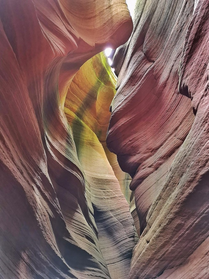 樺樹(shù)溝是景色最美最精華的峽谷,全長(zhǎng)300米左右,溝里游客很多,多到走不動(dòng)路。中午11點(diǎn)至下午2點(diǎn)光線最好,因?yàn)閸{谷頂部狹窄,如果沒(méi)有光線谷內(nèi)比較幽暗。樺樹(shù)溝上窄下寬, 和龍巴溝相反,巖石更有曲線和紋理,色彩也更豐富,配合恰好的光線,絕對(duì)能出大片。