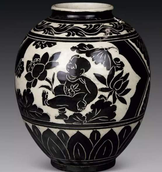 簡(jiǎn)直可以說(shuō)集陶瓷裝飾方法之大成,影響著后世。特別是黑繪白地黑花寥寥數(shù)筆寫(xiě)出個(gè)圖形,生動(dòng)無(wú)比。形成了獨(dú)特的有規(guī)無(wú)束剛勁豪放,瀟灑自如的藝術(shù)風(fēng)格。在表現(xiàn)題材上,世俗所見(jiàn)、花鳥(niǎo)魚(yú)蟲(chóng)、龍鳳鹿馬、市儈景物、童叟仕宦、詩(shī)歌詞賦、兒歌詞曲無(wú)所不繪,真可謂是一部歷史民俗圖像。