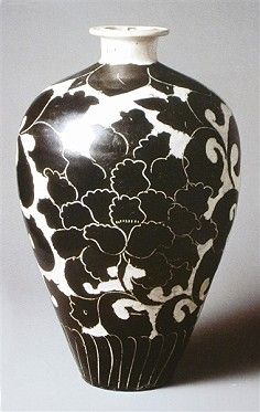 磁州窯以生產(chǎn)白釉黑彩瓷器著稱于世,黑白對(duì)比,強(qiáng)烈鮮明,圖案十分醒目,刻、劃、剔、填彩兼用,并且創(chuàng)造性地將中國(guó)繪畫(huà)的技法,以圖案的構(gòu)成形式,巧妙而生動(dòng)地繪制在瓷器上,具有引人入勝的藝術(shù)魅力。它開(kāi)創(chuàng)了我國(guó)瓷器繪畫(huà)裝飾的新途徑,同時(shí)也為宋以后景德鎮(zhèn)青花及彩繪瓷器的大發(fā)展奠定了基礎(chǔ)。