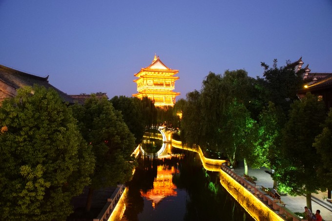 臺(tái)兒莊古城內(nèi)主要建筑及街區(qū)夜間燈火通明,人頭攢動(dòng),晚夜比較熱鬧,古城夜景還是可圈可點(diǎn)的。
