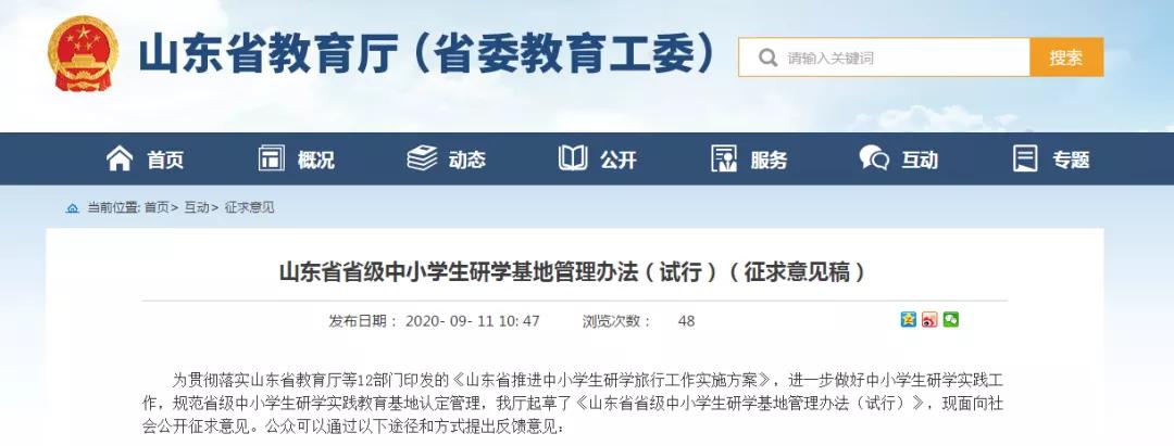 第二條 山東省省級研學基地是指經省教育廳聯合省發(fā)展改革委、省文化和旅游廳等部門評議認定,以優(yōu)秀傳統(tǒng)文化、革命傳統(tǒng)、國情、國防科工和自然生態(tài)教育為主要內容,面向中小學生開展研學實踐活動,具有較好引領示范作用的各類教育基地、自然和文化遺產資源、文化場館、大型公共設施、高等院校、科研機構、工礦企業(yè)等。