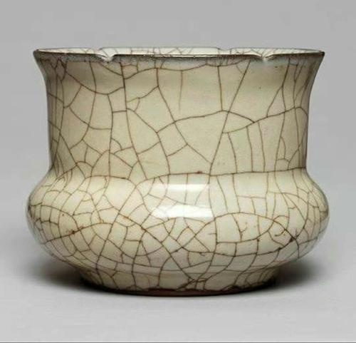 哥窯是宋代南方五大名窯之一,確切窯場到今尚沒有發(fā)現(xiàn)。據(jù)歷史傳說為章生一、章生二兄弟在兩浙路處州、龍泉縣各建一窯,哥哥建的窯稱為"哥窯",弟弟建的窯稱為"弟窯",也稱章窯、龍泉窯。有的專家認為傳世的宮藏哥窯瓷,實際上是南宋時修內(nèi)司官窯燒制的。哥窯的主要特征是釉面有大大小小不規(guī)則的開裂紋片,俗稱"開片"或"文武片"。細小如魚子的叫"魚子紋",開片呈弧形的叫"蟹爪紋",開片大小相同的叫"百圾碎"。小紋片的紋理呈金黃色,大紋片的紋理呈鐵黑色,故有"金絲鐵線"之說。其中仿北宋官窯的瓷器為黑胎,也具有"紫口鐵足"。 哥窯瓷胎體有厚有薄,釉色主要有粉青、月白、米黃數(shù)種,釉面光澤如膚之微汗,是為上品。器形以洗、爐、盤、碗為多。