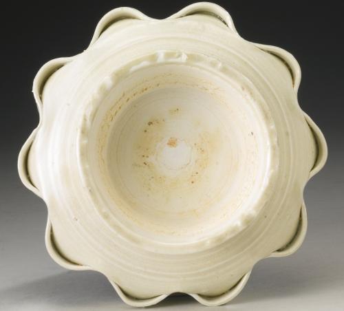 定窯創(chuàng)燒于唐朝后期。從這時(shí)一直到五代的定窯瓷器,還較為粗糙簡(jiǎn)單,器型以碗為主,正處于向精瓷的過渡階段。但在五代中后期,定窯白瓷出現(xiàn)了一次根本性的飛躍。所燒瓷器不再施化妝土,胎、釉呈現(xiàn)出精、白薄的特征。有些器物的白度甚至超過了邢窯的細(xì)白瓷器。