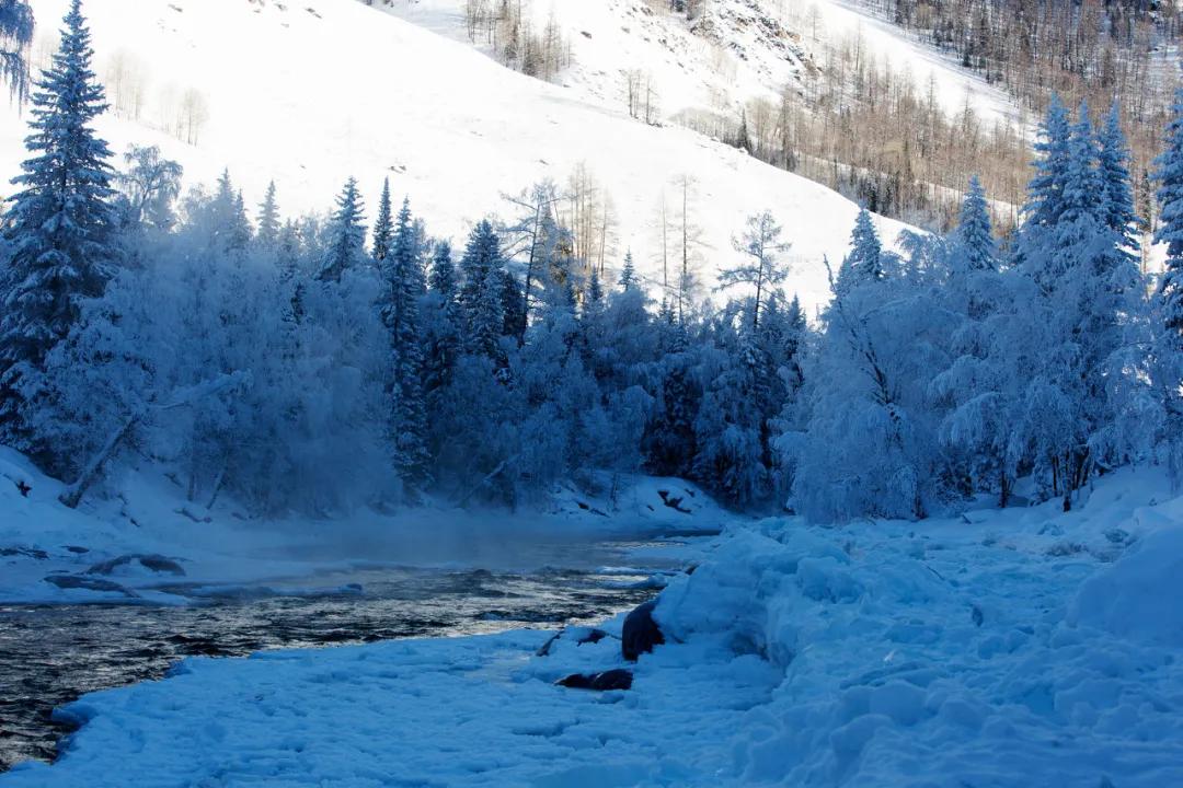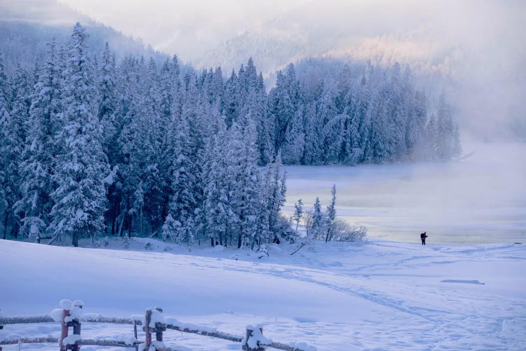 每到冬季,喀納斯就變成了一個無人涉足的秘境,大雪覆蓋下的喀納斯多了幾分極致的原始之美。