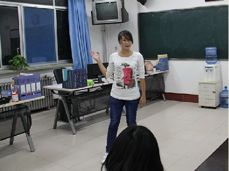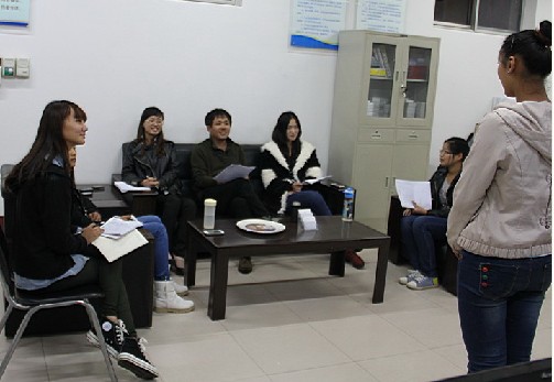 同學(xué)們在聽凱文旅游英語俱樂部的介紹